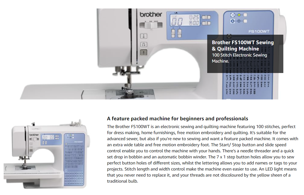 Brother FS100WT Free Motion Embroidery/Sewing and Quilting Machine