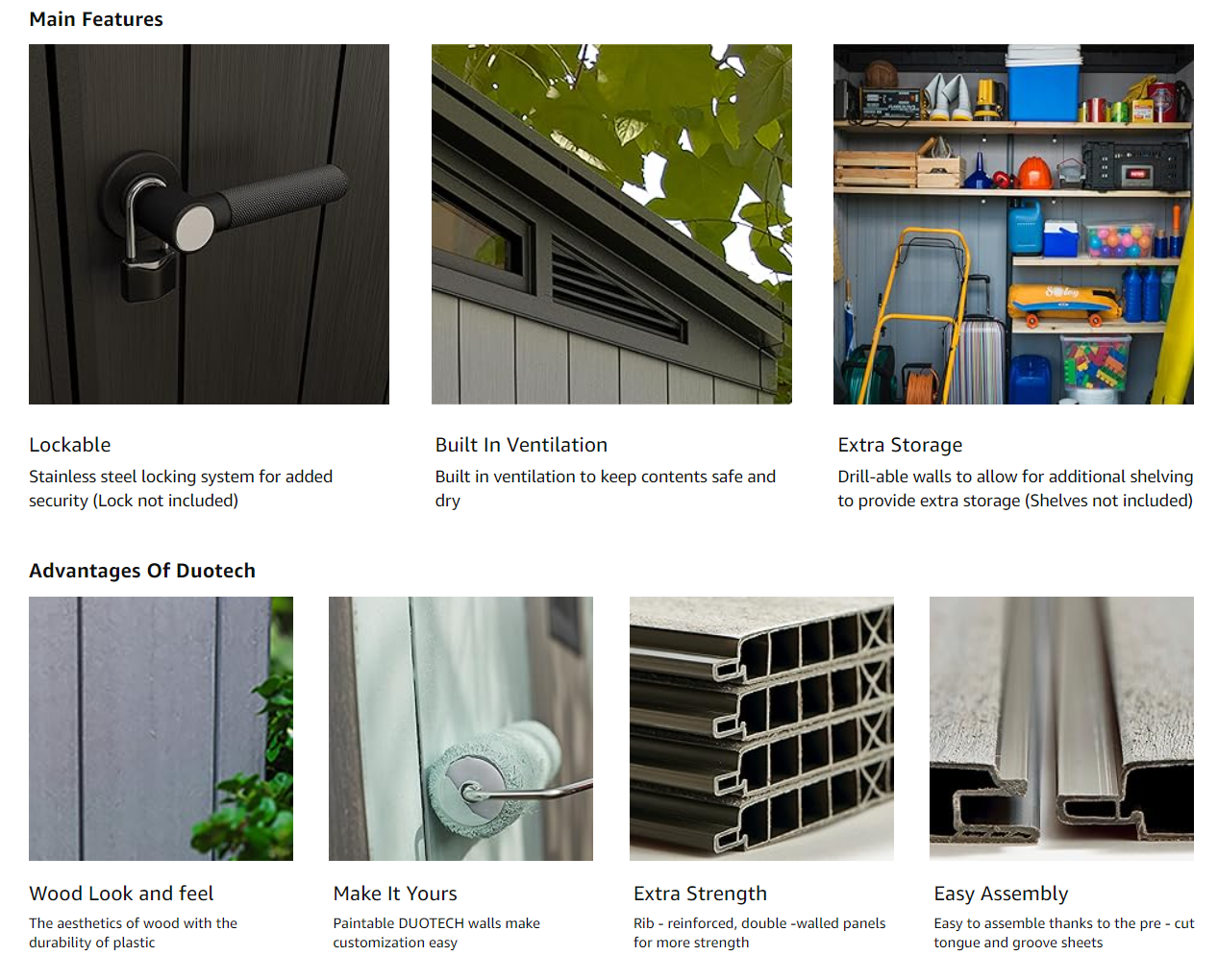 - Made of durable maintenance and fade-free resin with rib reinforced and steel reinforcement wall panels